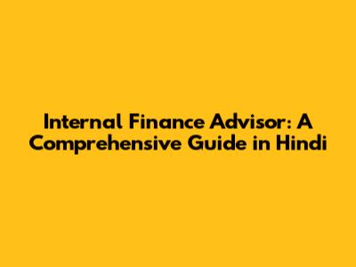 Internal Finance Advisor: A Comprehensive Guide In Hindi