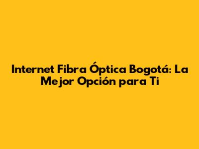 Internet Fibra Óptica Bogotá: Guía Completa