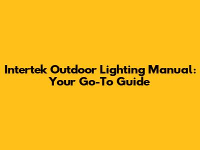 Hey guys! Welcome to your ultimate guide on everything related to the Intertek Outdoor Lighting Manual. Whether you're a seasoned DIY enthusiast or just starting out, understanding your outdoor lighting system is super important. This manual is your best friend when it comes to installation, troubleshooting, and maintaining your Intertek lights. We'll dive into the nitty-gritty of the manual, making sure you understand every aspect so you can keep your outdoor spaces shining bright. So, grab a coffee, get comfy, and let's illuminate your knowledge!