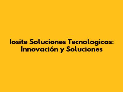 Iosite Soluciones Tecnologicas: Innovación Y Soluciones