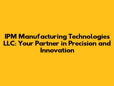 So, why should you choose IPM Manufacturing Technologies LLC? Here are a few key reasons: