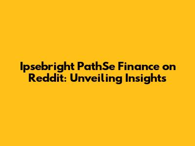 Ipsebright PathSe Finance on Reddit: The Community's Perspective