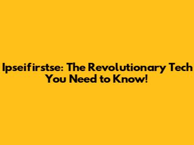 Ipseifirstse: The Revolutionary Tech You Need To Know!