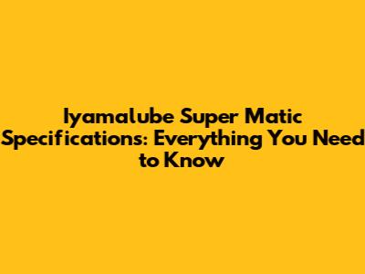 Iyamalube Super Matic Specs: Everything You Need To Know