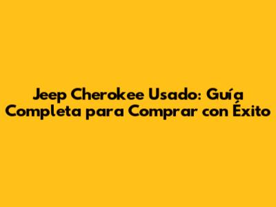 Jeep Cherokee Usado: Guía Completa Para Comprar Con Éxito