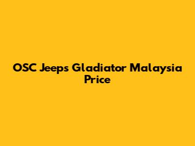 Given these factors, providing an exact price for the OSC Jeeps Gladiator in Malaysia is challenging without checking directly with OSC for the most current quotes. However, you can generally expect the price to start from around RM 300,000 and go upwards depending on the trim, engine, and customizations you choose. Keep in mind that this is just an estimate, and actual prices may vary. For the most accurate and up-to-date pricing, it's best to contact OSC Jeeps directly or visit their showroom. They can provide you with a detailed breakdown of the costs based on your specific requirements and preferences.