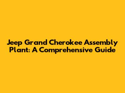 Jeep Grand Cherokee Assembly Plant: A Comprehensive Guide