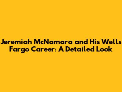 Unveiling Jeremiah McNamara's Role at Wells Fargo