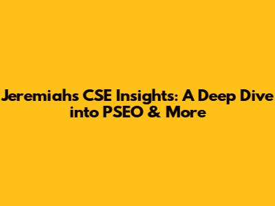 Jeremiah's CSE Insights: A Deep Dive Into PSEO & More