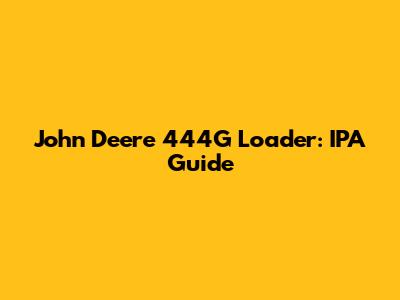 The John Deere 444G loader is a versatile and robust piece of machinery widely used in construction, agriculture, and material handling. Known for its reliability and performance, the 444G is engineered to handle demanding tasks efficiently. Before we delve into the IPA aspects, let's quickly recap some of its key features and benefits.