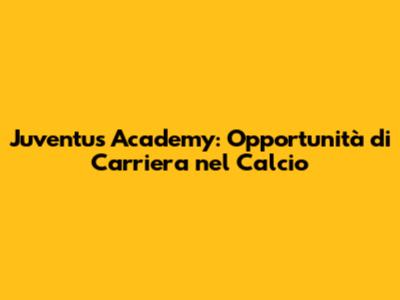 Juventus Academy: Opportunità Di Carriera Nel Calcio