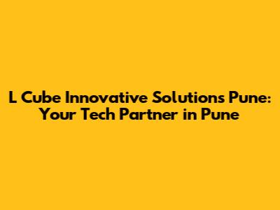 Hey guys! Are you looking for a dynamic and innovative tech partner right here in Pune? Then look no further! Let's dive into everything you need to know about L Cube Innovative Solutions, a company making waves in the tech scene.
