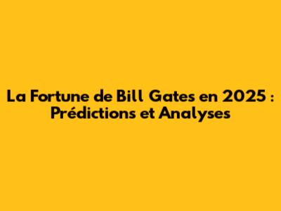 La Fortune De Bill Gates En 2025 : Prédictions Et Analyses