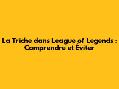 La triche dans League of Legends est un problème sérieux qui nuit à l'expérience de jeu de tous. En comprenant les différentes formes de triche, ses conséquences, et en prenant des mesures pour vous protéger, vous pouvez contribuer à un environnement de jeu plus juste et plus agréable. Rappelez-vous, le fair-play est la clé pour profiter pleinement de League of Legends et pour vous améliorer en tant que joueur. Alors, jouez honnêtement, amusez-vous et n'oubliez jamais de signaler les tricheurs ! Bon jeu à tous !