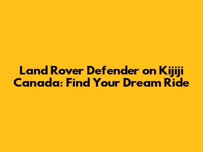 Land Rover Defender On Kijiji Canada: Find Your Dream Ride