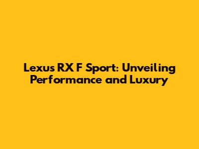 Lexus RX F Sport: Ultimate Guide To Performance