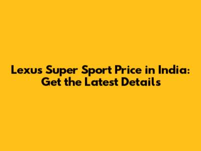 Lexus Super Sport Price In India: Get The Latest Details