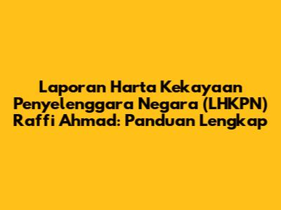 Informasi terbaru mengenai harta kekayaan Raffi Ahmad dapat ditemukan melalui berbagai sumber, meskipun tidak ada laporan LHKPN resmi yang dapat diakses publik. Sumber-sumber tersebut meliputi laporan media, wawancara, dan pernyataan dari Raffi Ahmad sendiri. Media massa seringkali memberitakan mengenai perkembangan bisnis dan investasi yang dilakukan oleh Raffi Ahmad. Wawancara dengan Raffi Ahmad juga dapat memberikan informasi mengenai proyek-proyek bisnis yang sedang dijalankan. Namun, perlu diingat bahwa informasi yang diperoleh dari sumber-sumber tersebut mungkin tidak selalu lengkap dan akurat. Untuk mendapatkan informasi yang lebih akurat, disarankan untuk mencari informasi dari berbagai sumber dan melakukan cross-check. Beberapa informasi yang seringkali menjadi sorotan publik mengenai harta kekayaan Raffi Ahmad meliputi: aset properti, investasi di berbagai perusahaan, serta koleksi kendaraan mewah. Raffi Ahmad dikenal memiliki banyak aset properti, mulai dari rumah mewah hingga apartemen. Selain itu, ia juga aktif berinvestasi di berbagai perusahaan, baik yang bergerak di bidang hiburan maupun bisnis lainnya. Koleksi kendaraan mewahnya juga seringkali menjadi perbincangan publik. Perlu diingat bahwa informasi mengenai harta kekayaan Raffi Ahmad bersifat dinamis dan dapat berubah sewaktu-waktu. Oleh karena itu, penting untuk selalu mengikuti perkembangan informasi terbaru dari sumber-sumber yang terpercaya. Meskipun tidak ada laporan LHKPN resmi, publik tetap dapat mengikuti perkembangan kekayaan Raffi Ahmad melalui berbagai sumber informasi yang tersedia.