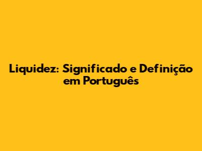 Liquidez: Significado E Definição Em Português