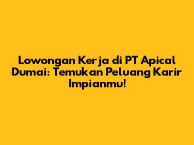 Lowongan Kerja PT Apical Dumai: Temukan Peluang Karir!