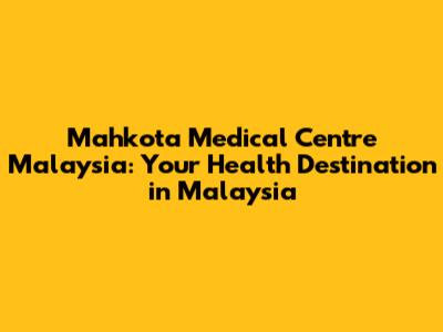 Mahkota Medical Centre: Your Health Destination In Malaysia