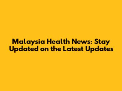 Malaysia Health News: Stay Updated On The Latest Updates