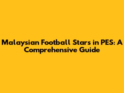 Malaysian Football Stars In PES: A Comprehensive Guide