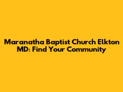 Maranatha Baptist Church Elkton MD: Find Your Community
