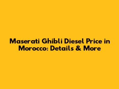 Let's dive into the Maserati Ghibli Diesel price in Morocco, exploring everything you need to know about this luxurious sedan. If you're considering buying a Maserati Ghibli Diesel in Morocco, you're probably wondering about the cost, features, and overall value. This guide will break down all the essential details to help you make an informed decision. We'll cover the pricing specifics, factors influencing the cost, available features, and how it stacks up against other luxury cars in the Moroccan market. By the end, you’ll have a clear understanding of what to expect when investing in this stylish vehicle.