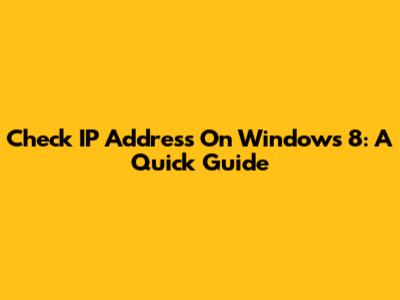 Check IP Address On Windows 8: A Quick Guide