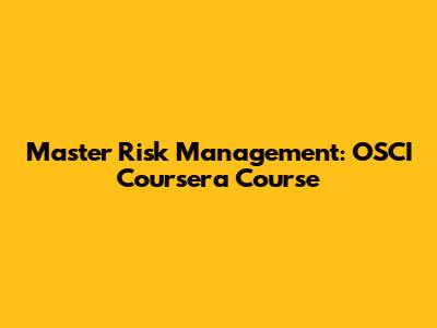Master Risk Management: OSCI Coursera Course