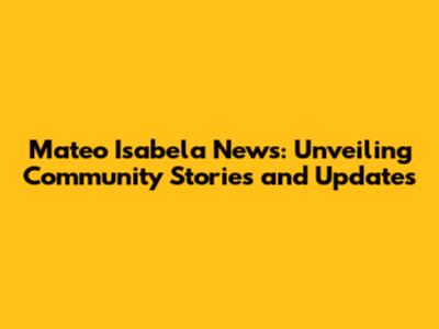 Mateo Isabela News: Updates, Stories, And Community Insights