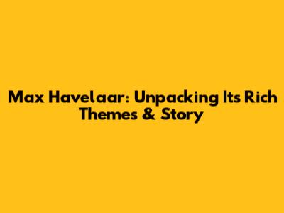 Max Havelaar: Unpacking Its Rich Themes & Story