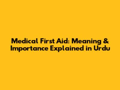 Medical First Aid: Meaning & Importance Explained In Urdu