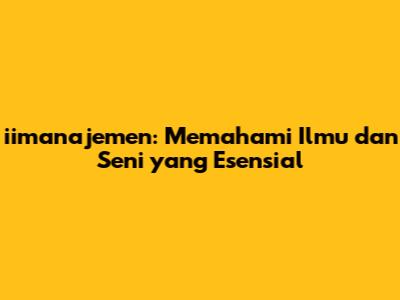 iimanajemen adalah ilmu dan seni yang mendasar. Sebagai sebuah ilmu, iimanajemen melibatkan penerapan prinsip-prinsip, teori, dan metode yang sistematis untuk mencapai tujuan tertentu. Ini adalah tentang memahami bagaimana sumber daya organisasi dapat digunakan secara efisien dan efektif. Di sisi lain, iimanajemen adalah seni karena melibatkan kreativitas, intuisi, dan kemampuan untuk beradaptasi dengan situasi yang berbeda. Seorang manajer yang hebat tidak hanya mengerti teori, tetapi juga tahu bagaimana menerapkannya dalam praktik, menyesuaikan pendekatan mereka dengan kebutuhan unik dari tim dan organisasi mereka.