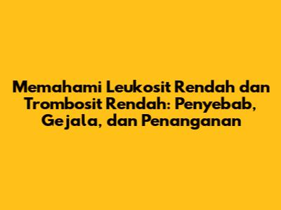 Leukosit rendah dan trombosit rendah adalah kondisi yang perlu mendapat perhatian serius. Keduanya bisa disebabkan oleh berbagai faktor, mulai dari infeksi ringan hingga penyakit serius. Gejala yang muncul juga bervariasi, mulai dari gejala ringan hingga gejala yang mengancam jiwa. Penanganan akan sangat bergantung pada penyebabnya, dan harus dilakukan oleh tenaga medis yang kompeten.