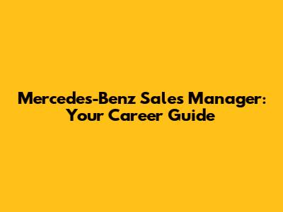 Mercedes-Benz Sales Manager: Your Career Guide