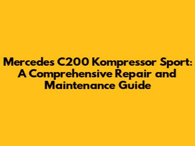 Mercedes C200 Kompressor Sport: Repair & Maintenance Guide