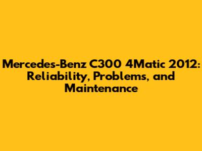 The Mercedes-Benz C300 4Matic 2012 is a well-rounded luxury sedan that offers a blend of performance, style, and all-weather capability. While it has its share of common problems, regular maintenance and timely repairs can help ensure its reliability and longevity. By understanding the potential issues and following a proactive maintenance approach, you can enjoy the driving experience that the C300 4Matic 2012 offers for years to come. Remember to consult with qualified mechanics and refer to your owner's manual for specific maintenance recommendations to keep your Mercedes-Benz in top condition.
