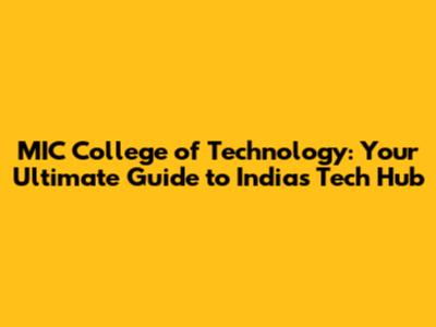 MIC College Of Technology: Your Guide To India's Tech Hub