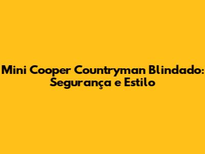 Mini Cooper Countryman Blindado: Segurança E Estilo
