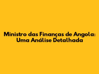 Ministro Das Finanças De Angola: Uma Análise Detalhada