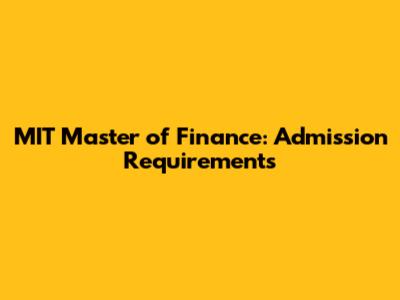 MIT Master Of Finance: Admission Requirements