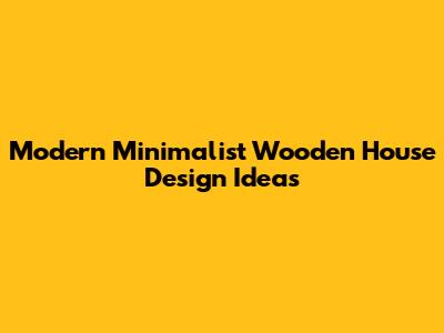 Key Elements of Modern Minimalist Wooden House Design
