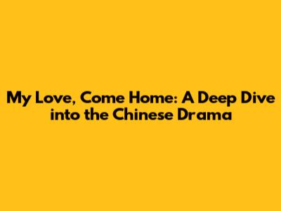 My Love, Come Home: A Deep Dive Into The Chinese Drama