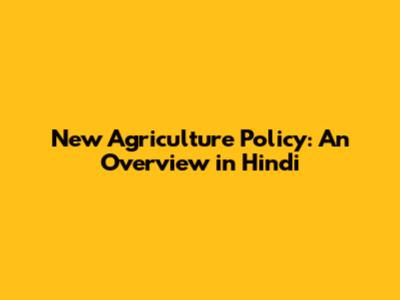New Agriculture Policy: An Overview In Hindi