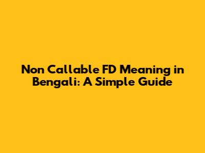 Non Callable FD Meaning In Bengali: A Simple Guide