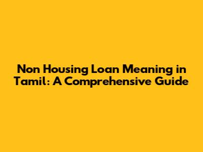 Non Housing Loan Meaning In Tamil: A Comprehensive Guide