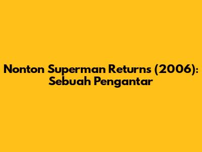 Nonton Superman Returns (2006): Sebuah Pengantar