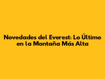 Novedades Del Everest: Lo Último En La Montaña Más Alta